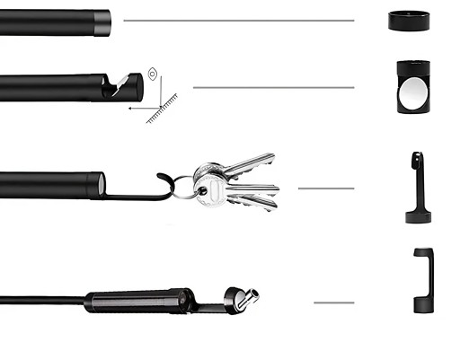 Kamera endoskopowa pozwala na dokładną diagnostykę problemów, np. w instalacjach wodno-kanalizacyjnych, w samochodach, itp. Dzięki temu możesz szybko zlokalizować usterki i przystąpić do ich naprawy. Dzięki dołączonym akcesoriom perspektywy są jeszcze większe. Końcówką z haczykiem podniesiesz upuszczone w niedostępne miejsce klucze, a dzięki przyborowi z magnesem upuszczona śrubka przestanie być Twoim zmartwieniem.