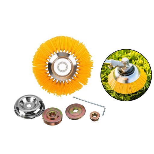 Funkcja: Głowica kosiarki może być używana w ogrodzie do skutecznego usuwania niechlujnych chwastów; może być również stosowany do usuwania rdzy, szczególnie z narożników trawy lub pęknięć cegieł.