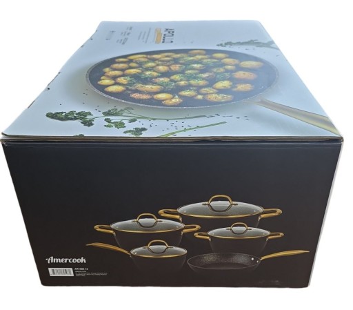 Zestaw garnków i patelni z powłoką marmurową 9 el. Amercook Apollo 1680.12 Exclusive w kolorze czarno-złotym