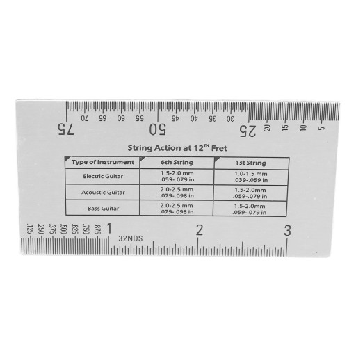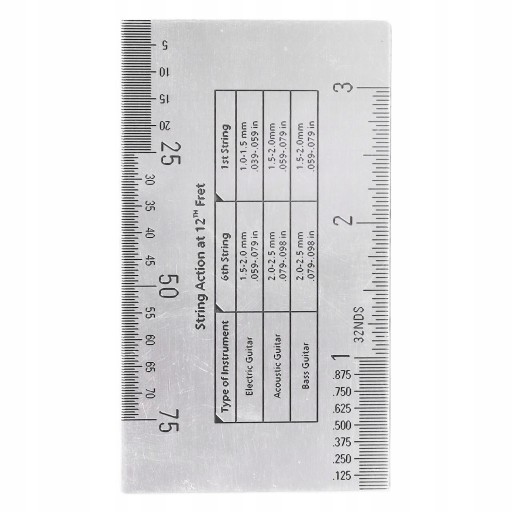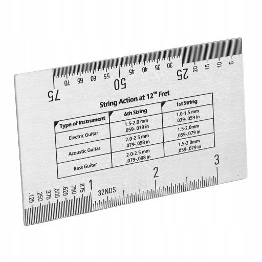 Funkcja:1. GŁÓWNA FUNKCJA: Ta miarka służy głównie do pomiaru wysokości struny gitarowej, regulacji jakości dźwięku i komfortu gry na gitarze.
