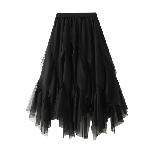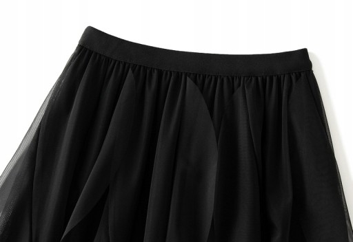 Cechy: dobrze elastyczny pas, linia A, średniej długości, rozkloszowany dół, tiul z wieloma warstwami.