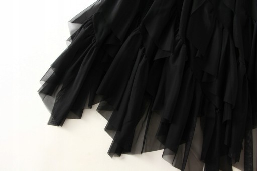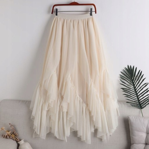 Wzór: Jest to urocza spódnica, ozdoba z asymetrycznymi marszczeniami lub haftowanymi kwiatami lub tiulem nieregularnym. Średniej długości, również wykonany z wielu warstw miękkiego tiulu i 1 warstwy podszewki, aby stworzyć romantyczny i idealny kształt.