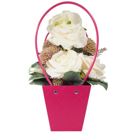 Bardzo estetyczna i elegancka pikowana torebka na kwiaty, która pięknie je podkreśli i sprawi, że nasz prezent będzie się wyróżniał.