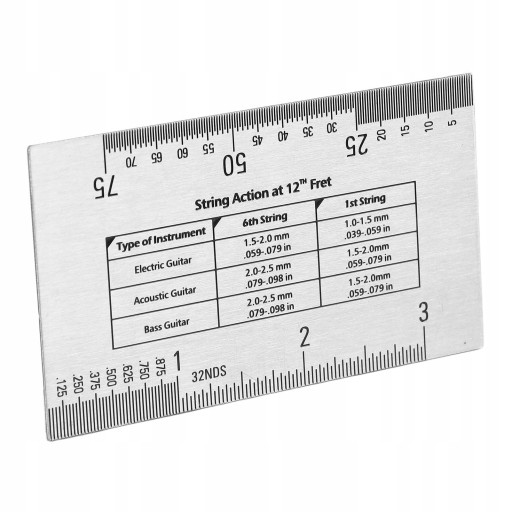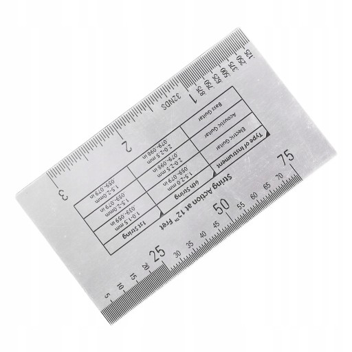 Funkcja:1. GŁÓWNA FUNKCJA: Ta miarka służy głównie do pomiaru wysokości struny gitarowej, regulacji jakości dźwięku i komfortu gry na gitarze.
