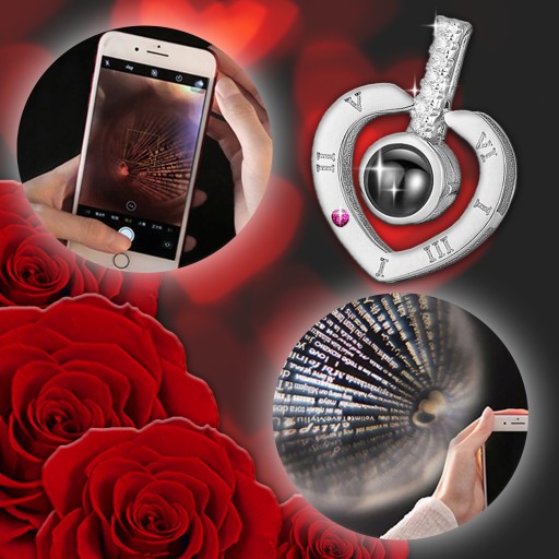 - Naszyjnik ze specjalnym szkłem pokazującym słowo "KOCHAM CIĘ" w 100 językach