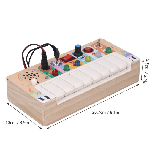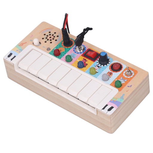 Funkcja:1. Włącznik światła LED: Ta elektroniczna tablica jest wyposażona w diody LED, które emitują delikatne i jasne kolory. Dzieci mogą włączyć odpowiednie światła LED, naciskając klawisz, zapewniając im dobre wrażenia wizualne.