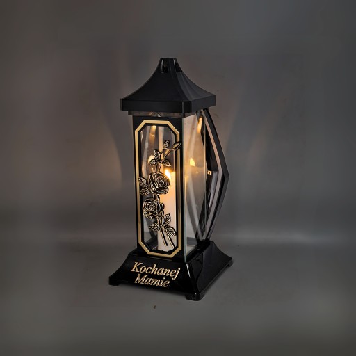 Wysokiej jakości lampion szklany. Zdejmowana pokrywa umożliwia łatwe umieszczenie wkładu wewnątrz znicza. Lampion posiada elementy ozdobne wykonane z tworzywa.
