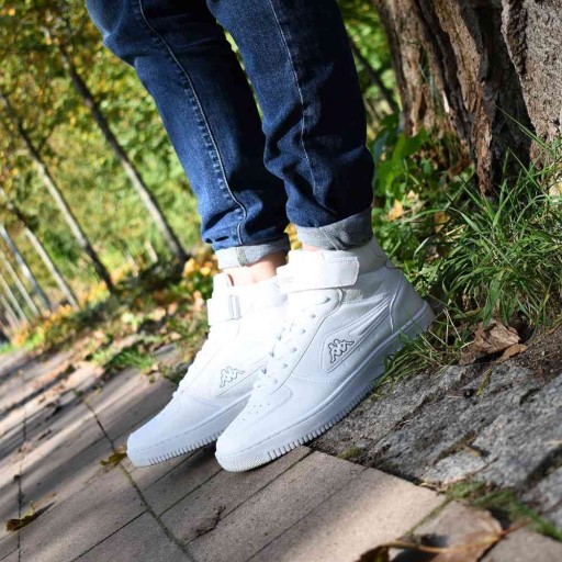 Kappa Bash Mid to uniseksowe buty lifestyle w jednolitym białym kolorze. Syntetyczna, wydłużona cholewka dopasowuje się do stopy, a perforacja w przedniej części nie tylko podkreśla klasyczny krój butów, ale również dba o swobodny przepływ powietrza. Buty Kappa Bash Mid przeznaczone są do codziennego użytkowania.