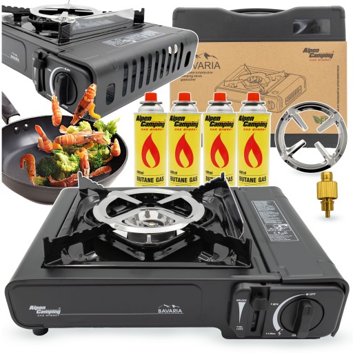 KUCHENKA TURYSTYCZNA PRZENOŚNA GAZOWA NA NABÓJ MARKOWA ALPEN CAMPING 4x GAZ POLSKIEJ MARKI ALPEN CAMPING x4 KARTUSZ