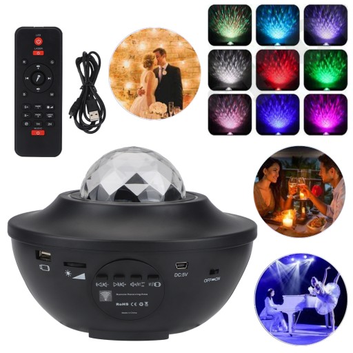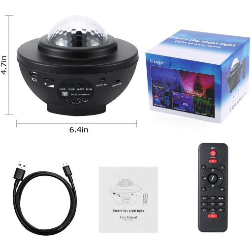 PROJEKTOR LAMPKA NOCNA GWIAZD RZUTNIK NIEBA LED GŁOŚNIK BLUETOOTH + PILOT