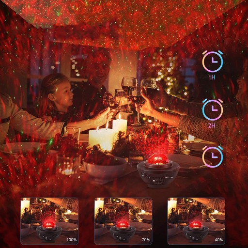 - Ten projektor gwiezdny ma wbudowane zegary automatycznego wyłączania 1H i 2H, które domyślnie wyłączają się automatycznie w ciągu 4 godzin. Możesz także ustawić minutnik w aplikacji mobilnej.