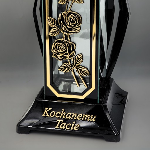 Wysokiej jakości lampion szklany. Zdejmowana pokrywa umożliwia łatwe umieszczenie wkładu wewnątrz znicza. Lampion posiada elementy ozdobne wykonane z tworzywa.