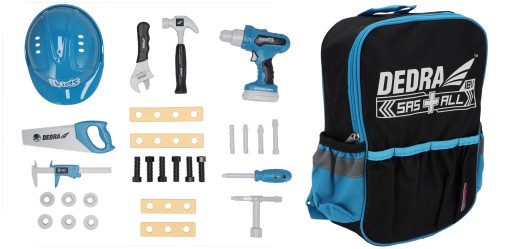 Zestaw zabawkowy DEDRA Kids - plecak, wiertarko-wkrętarka, narzędzia ręczne - 28 elementów