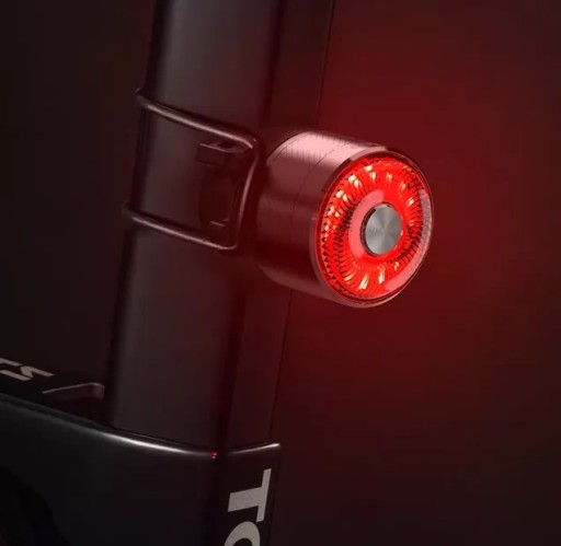 Inteligentna tylna lampka rowerowa z funkcją ostrzegania (mocniejszego światła) podczas hamowania. Pięć różnych trybów pracy.