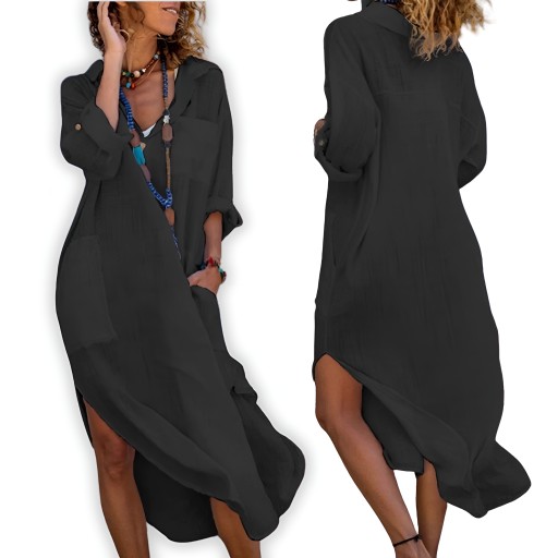 БОХО-РУБАШКА ЛЕТНЕЕ ПЛАТЬЕ ПАРЕО ДЛИННАЯ ПЛЯЖНАЯ КЕПКА ДЛЯ ПЛЯЖА ЧЕРНАЯ