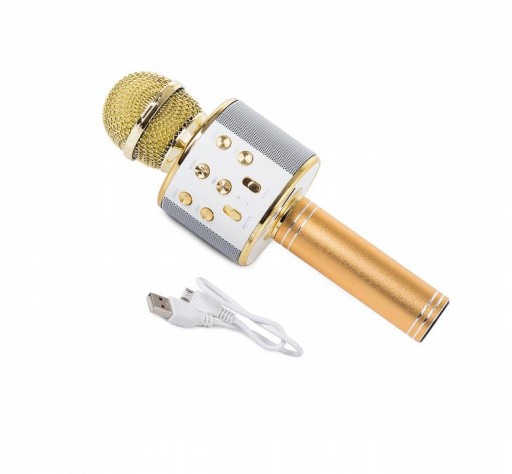 Mikrofon KARAOKE- złoty - głośnik bluetooth, modulator głosu