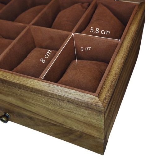 ✅ Wymiary przegródek na zegarki (8 sztuk)