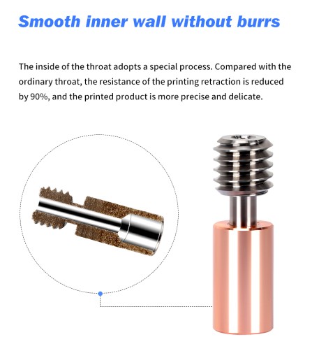 Wnętrze produktu jest traktowane specjalnym procesem, a wewnętrzna ściana jest gładka i wolna od zadziorów. W porównaniu ze zwykłym "gardłem" opory podczas retrakcji zostały zmniejszone o 90%, a wydrukowany model jest dokładniejszy i posiada gładsze powierzchnie.