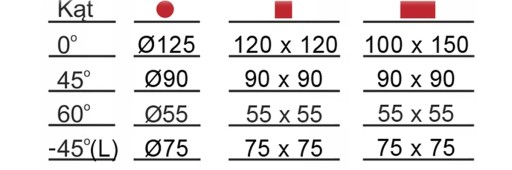 - Odchylenie ramy: -45° - 60°