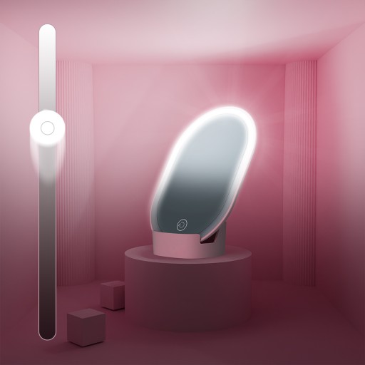 Lusterko wyposażone jest w energooszczędne podświetlenie LED w formie pierścienia świetlnego, dzięki któremu wykonasz dokładny makijaż, czy inny zabieg pielęgnacyjny. Płynna regulacja jasności pozwala na idealne dostosowanie natężenia światła do własnych potrzeb, nawet jeśli w pomieszczeniu nie ma sprzyjających ku temu warunków.