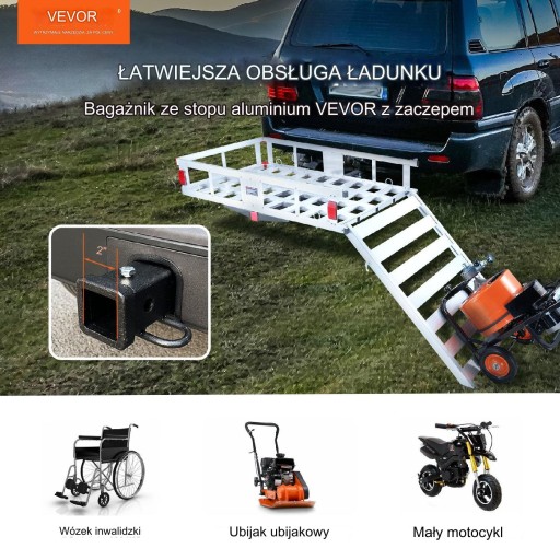 Bagażnik ten jest kompatybilny z każdym pojazdem wyposażonym w 2-calowy hak holowniczy, w tym samochodami, SUV-ami, furgonetkami i pickupami. Dodatkowa przestrzeń umożliwia przewożenie różnorodnych przedmiotów, takich jak walizki, rowery, kajaki i inne sprzęty podróżne.