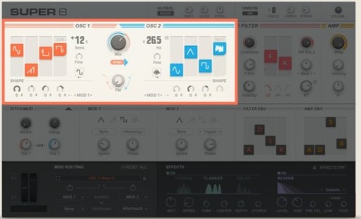 Sekcja oscylatora zawiera również strojenie i dostrajanie, opcję synchronizacji oraz możliwość ustawienia oscylatora 2 w trybie dostrajania częstotliwości, a wszystko to razem pozwala na dość dramatyczną syntezę z bloku. W rzeczywistości to zaskakujące, jak dużą elastyczność i praktyczne możliwości dostosowania brzmienia ta sekcja może wytworzyć od razu, zwłaszcza gdy zaczniesz bawić się i łączyć oba oscylatory – a tak naprawdę nie zagłębiliśmy się jeszcze zbytnio w szczegółową architekturę syntezatora .