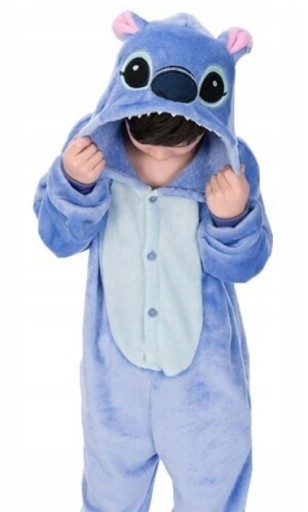 Jesteś miłośnikiem uroczego Stich`a? Masz okazję sam nim zostać! Kigurumi to jednoczęściowy strój z kapturem, który ma wiele zastosowań- zarówno jako wygodna piżama, dres do domu, czy przebranie na różnego rodzaju imprezy ze znajomymi. Idealnie sprawdza się jako prezent dla najbliższych! Niebieski kombinezon STICH wykonany jest z mikrofibry, która jest ciepła, bardzo miła w dotyku i przytulna. Wygodny luźny krój, kieszenie oraz ściągacze przy rękawach i nogawkach sprawią, że będziesz się czuł bardzo wygodnie i swobodnie.