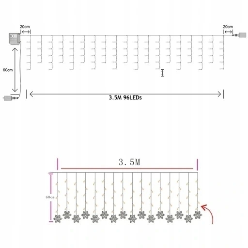 - Pakiet zawiera: 1 x śnieżynka LED kurtyna świetlna
