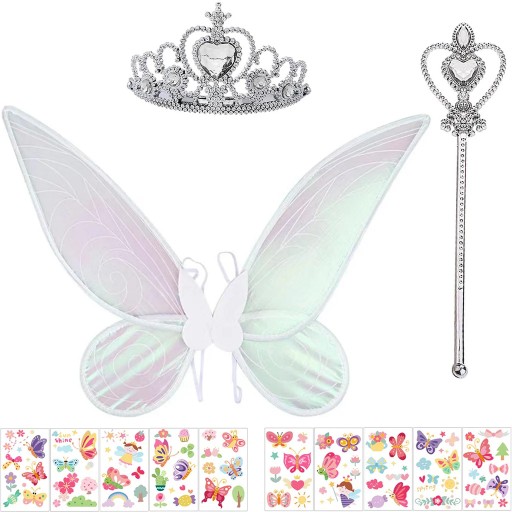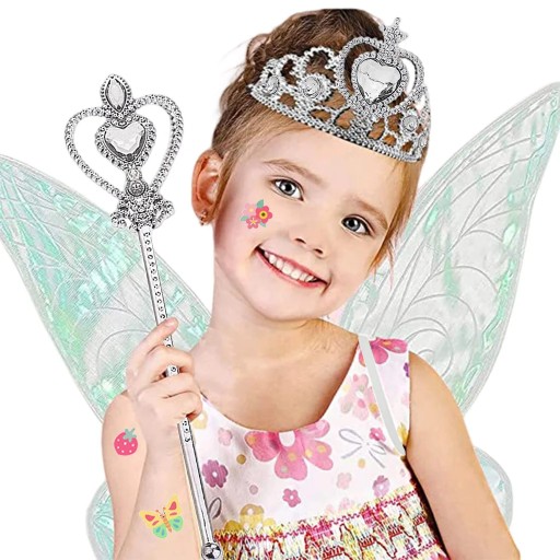 - Akcesoria odzieżowe Angel Wings - Skrzydła anioła motyla z koroną, różdżką i 10 naklejkami z tatuażami w kształcie liści motyla Wszystkie dodatki odzieżowe, których potrzebuje wróżka i na które zasługuje!