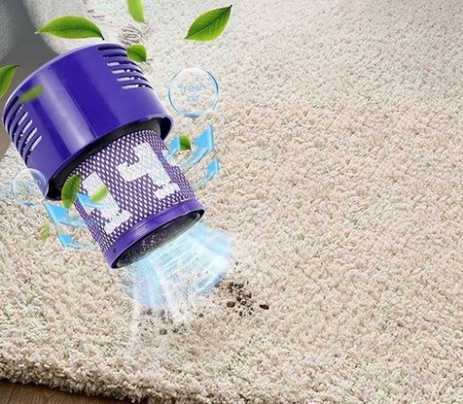 Filtr do Dyson V10 usuwa cząstki kurzu, alergenów i innych zanieczyszczeń, co może poprawić jakość powietrza w pomieszczeniu.