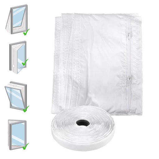 🧊【Genialna innowacyjna uszczelka okna śluzy powietrznej 】 Po prostu nałóż samoprzylepną taśmę z haczykiem na wewnętrzną część ramy okiennej i na samo okno. Przymocuj uszczelkę okna do taśmy haczykowej. Następnie otwórz zamek błyskawiczny na uszczelce okna i wyjmij wąż klimatyzatora za okno. Na koniec zamknij szczelnie zamek wokół węża.
