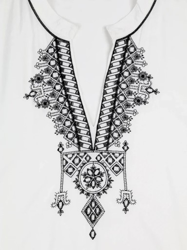 - ozdobiona eleganckim oryginalnym haftem przy dekolcie oraz po bokach,