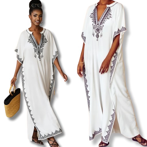 ORYGINALNA DŁUGA LETNIA TUNIKA PAREO SUKIENKA NARZUTKA W STYLU BOHO HAFT