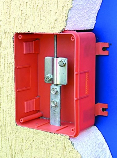Puszka przeznaczona jest do zabudowy złącza kontrolnego instalacji odgromowej w elewacjach zewnętrznych budynku (tynki - ocieplenia do 12 cm grubości).