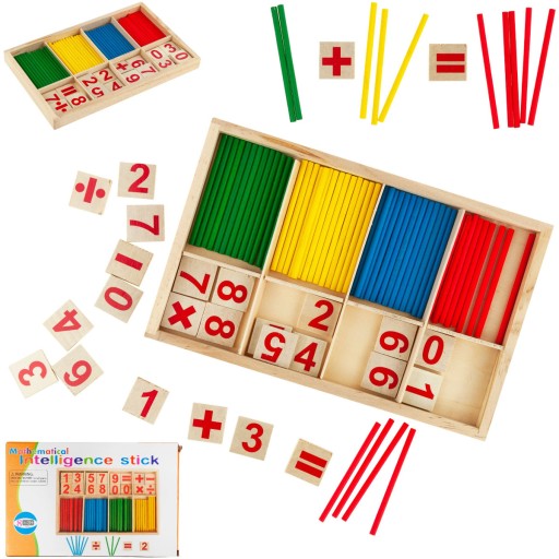 ZESTAW MATEMATYCZNY PATYCZKI DO NAUKI LICZENIA LICZYDŁO MATEMATYKA DREWNO
