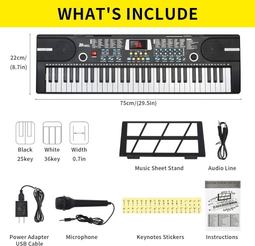 ŚWIAT MUZYKI DZIECI: Zestaw pianin klawiszowych dla dzieci przeznaczony jest dla dzieci w wieku 3, 4, 5, 6, 7, 8, 9, 10 lat. Warto wspomnieć, że jego 61 pełnowymiarowych klawiszy zapewnia wykonawcom poczucie tradycyjnej gry na pianinie. Pakiet zawiera 61-klawiszowy fortepian dla dzieci, mikrofon, adapter UL, stojak na nuty, linię audio i naklejki z nutami, dzięki którym Twoje dzieci mogą tworzyć niesamowitą muzykę. Dzieci mogą uczyć się, bawić i zakochiwać się w muzyce. 30-dniowy pełny zwrot pieniędzy i 12-miesięczna gwarancja z 24-godzinną obsługą klienta.
