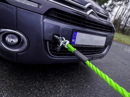 Mocna pleciona linka holownicza, o długości 4m, została zakończona hakami z zabezpieczeniem przed wypięciem.
