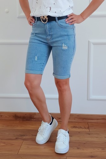 Szorty wykonane z wysokiej jakości bawełny, materiał miękki i elastyczny. Model dłuższy, przed kolano, końce nogawek oryginalnie wywinięte przez producenta, można odwinąć. Dziury i przetarcia na nogawkach. Idealnie sprawdzi się w połączeniu ze sportowym obuwiem jak również ze szpilkami. Dzięki swojej uniwersalności, pasują niemal do każdej stylizacji. Niezwykle oryginalna, kobieca i stylowa.