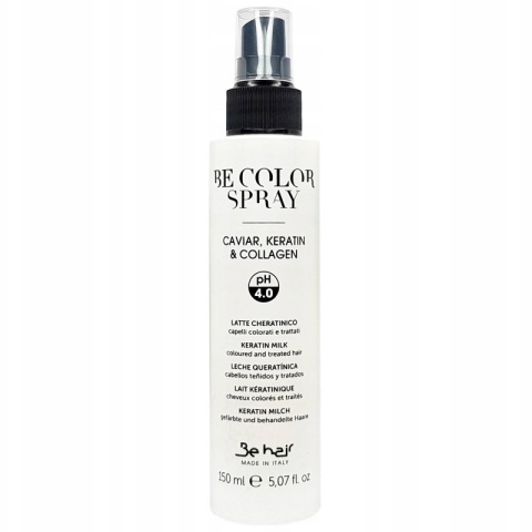 Be Hair Be Color Keratin Milk Spray to skoncentrowana formuła o kwaśnym Ph stworzona specjalnie dla włosów farbowanych i poddawanych zabiegom chemicznym. Natychmiastowo rozplątuje włosy, wygładza skórę głowy i zamyka łuski włosów, zapewniając głęboką regenerację i rewitalizację. Chroni i wzmacnia kolor, pozostawiając włosy niezwykle miękkie i jedwabiste. Oferując natychmiastowe rozwiązanie, produkt nie tylko ułatwia rozczesywanie włosów, ale również dogłębnie odżywia je, zapewniając ochronę przed utratą koloru. Jego delikatna formuła nie zawiera parabenów, siarczanów SLS/SLES ani alergizujących kompozycji zapachowych. Produkt do spłukiwania.