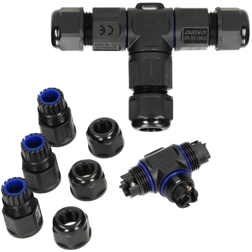 MINI konektor kablowy w formie trójnika OR-AE-13602 ma bardzo małe rozmiary. Wysoki stopień szczelności IP68 zabezpiecza przed działaniem czynników zewnętrznych, a nowatorskie uszczelnienie O-Ringiem nie naraża uszczelnienia na niszczące warunki zewnętrzne, chemiczne i mechaniczne. Materiał użyty do produkcji konektora jest odporny na działanie promieni UV i nadaje się do stosowania na zewnątrz. Sztywna i zbita konstrukcja umożliwia montaż w gruncie . Styki zostały wykonane z mosiądzu, dodatkowo zabezpieczonego przed utlenianiem warstwą niklu. Dławica wyposażona została w grubą uszczelkę, która dokładnie uszczelnia wprowadzone przewody.