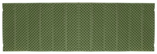 Mata turystyczna została wykonana z trwałego materiału, który zapewnia odporność na warunki atmosferyczne i uszkodzenia mechaniczne. Kolor zielony camo sprawia, że matę można wykorzystać nie tylko do wypoczynku, ale również jako element kamuflażu.