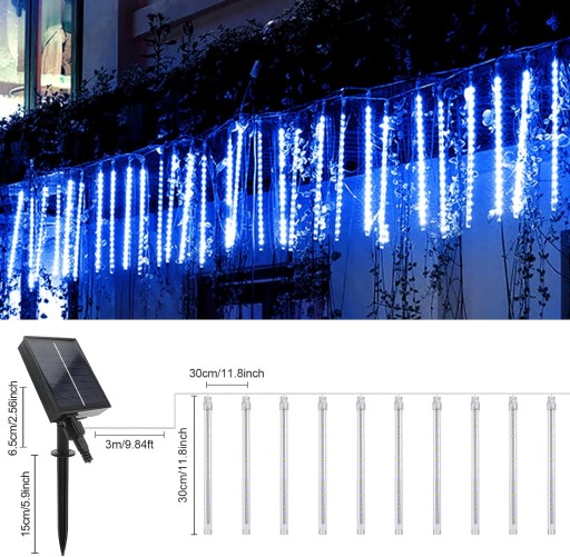 Solarne lampki deszczowe z deszczem meteorów, 30 cm, 10 rurek, 240 diod LED
