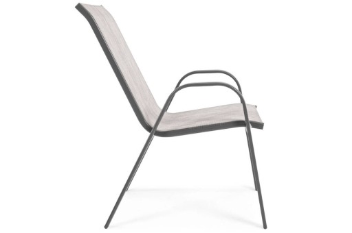 Krzesło tarasowe ma awangardowy kształt i jest niezwykle komfortowe. Pokrycie krzesła to bardzo trwałe tworzywo textilene. Odznacza się wysoką odpornością na rozciąganie i zabrudzenia.