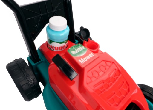Podczas popychania kosiarki jej przednie koła wydają dźwięk imitujący odgłos prawdziwego sprzętu: klik-klak i puszczają się bańki.