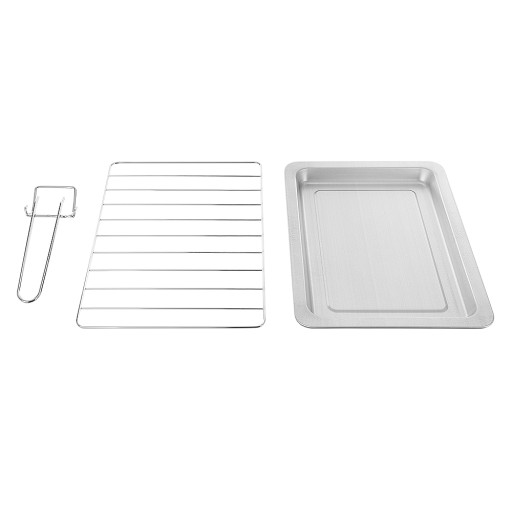- Wyposażenie: ruszt, taca, rączka do rusztu i tacy