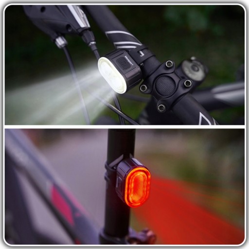 ✅ WODOODPORNA LAMPKA ROWEROWA Z POJEMNYM AKUMULATOREM + TYLNA LAMPKA LED