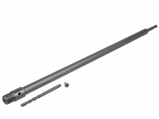 Adapter służy do przedłużenia frezów koronowych na długość 600 mm. Potrzebny wszędzie tam, gdzie należy wykonać otwory długości powyżej 600 mm. Adapter wyposażony jest w wiertło prowadzące.