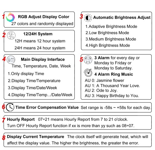 27 kolorów wyświetlacza dzięki LED RGB