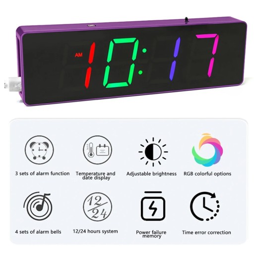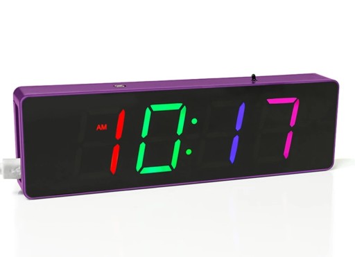 Mega zegar LED RGB Cyfry 3,5cm obudowa Fioletowa diody multikolor