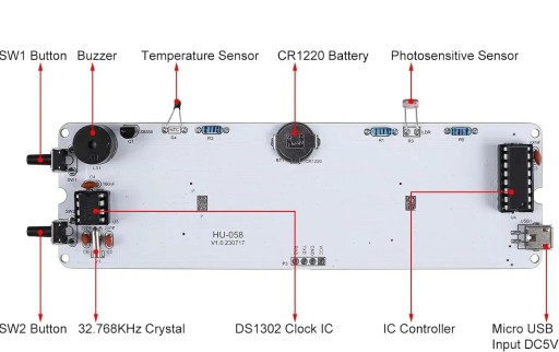 W celu ułatwienia montażu zegar ma już wlutowane